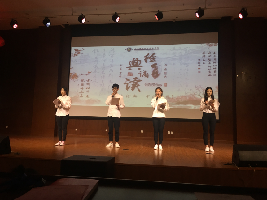 412日下午,中侨二楼报告厅举办了“中华经典·中国梦想”经典诵读大赛。旨在宣传贯彻《中华人民共和国国家通用语言文字法》、《上海市实施<中华人民共和国国家通用语言文字法>办法》,并进一步提高学生的语文素质及对祖国语言文字和中华优秀文化的热爱。护理与健康学院派出两组参赛选手,共计8名学生参赛。