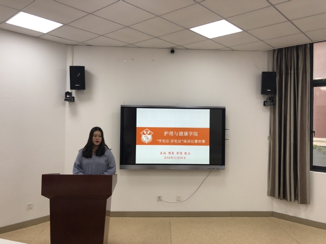 为了广泛深入的开展宪法学习,突出宪法宣传这一主题,并且遴选出具备综合演讲能力的选手参加校级比赛。11月8号,护理与健康学院组织了关于“学宪法 讲宪法”主题演讲比赛的初赛,17级、18级踊跃报名参赛,最终选取三位同学代表护理与健康学院参加学校决赛。