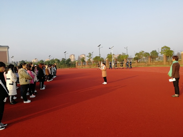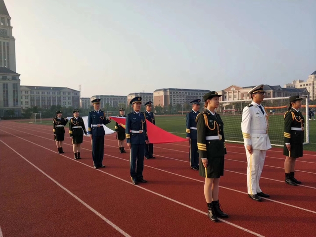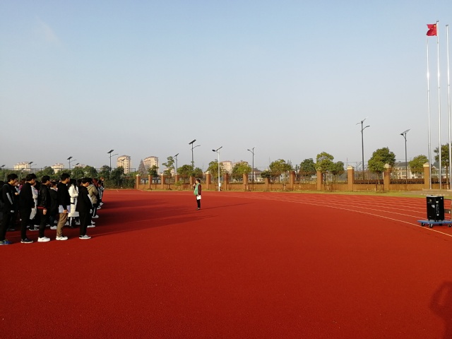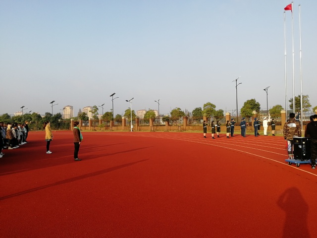 7时35分英姿飒爽的国旗班旗手们着装整齐,迈着矫健的步伐,以饱满的热情,庄严地护卫五星红旗进场。随后,伴着雄壮的《义勇军进行曲》,五星红旗冉冉升起,肃然而立的师生们凝神注目缓缓上升的国旗唱起了国歌,洪亮的歌声响彻云霄。