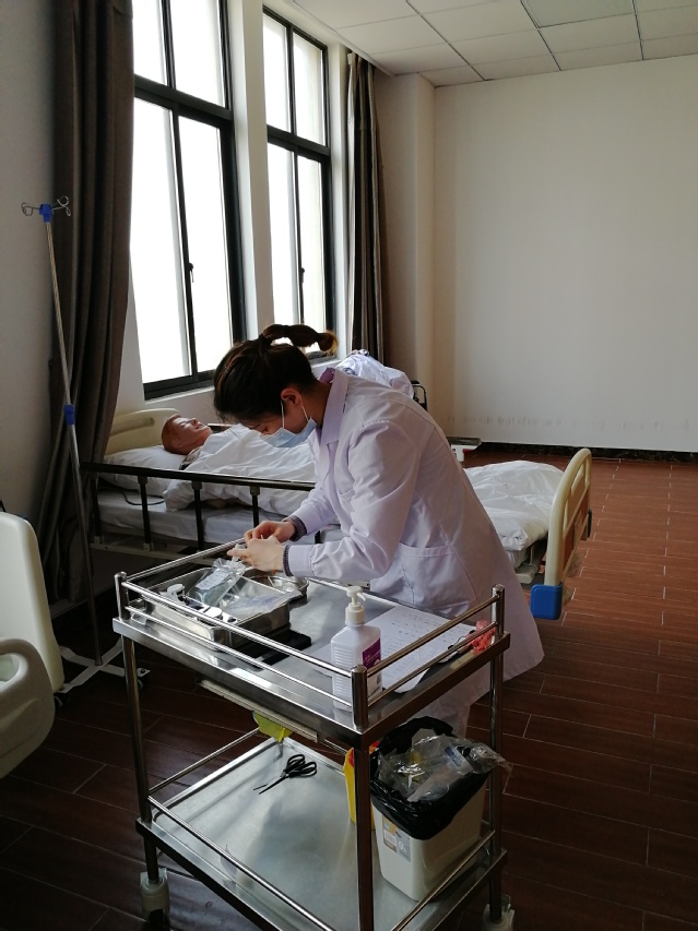 比赛期间,选手从容不迫,无论是理论水平、操作技巧还是人文关怀,都显示了相当高的水准。护理与健康学院院长张捷和各专业教师在现场观摩了比赛。