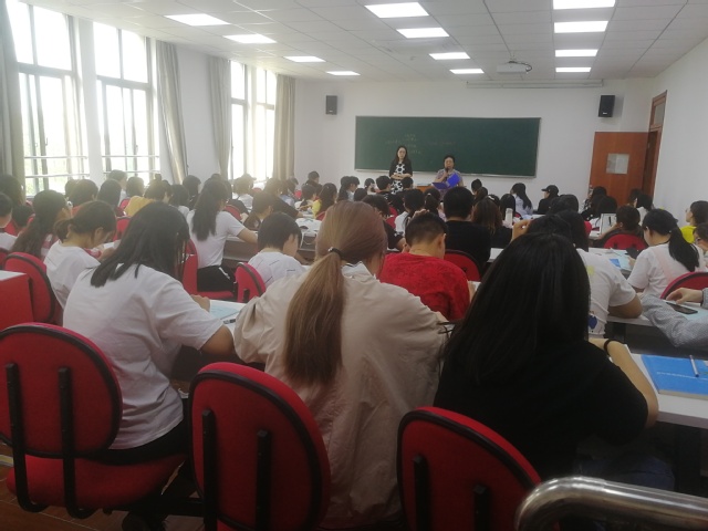 6月14日下午,我校护理与健康学院在护理学院楼208多媒体教室召开2017级护理(老年护理)、护理(康复护理)专业学生的实习动员大会。出席本次会议的有学院直属党支部书记曹雪楠、教学督导陈伟光、辅导员、17级全体同学。本次动员大会由曹雪楠书记主持。