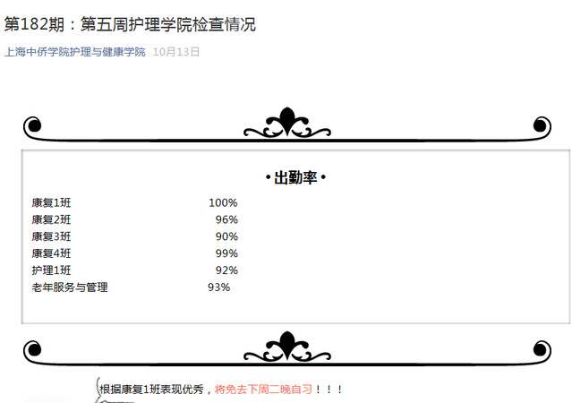 第五周护理学院检查情况