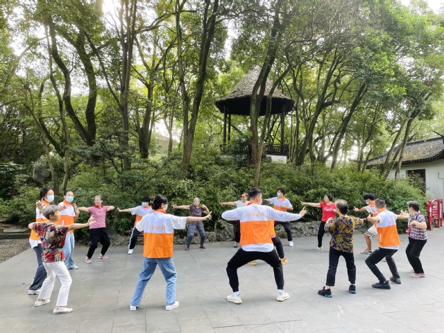 健康锻炼 怡心养神|八段锦是中国传统的健身气功,志愿者结合老人们的形体运动与呼吸,发布呼吸口令,使其在一呼一吸、手脚并用中感受到八段锦的独到魅力,达到身心放松,八段锦学习的整个过程中充满了欢乐与温暖。