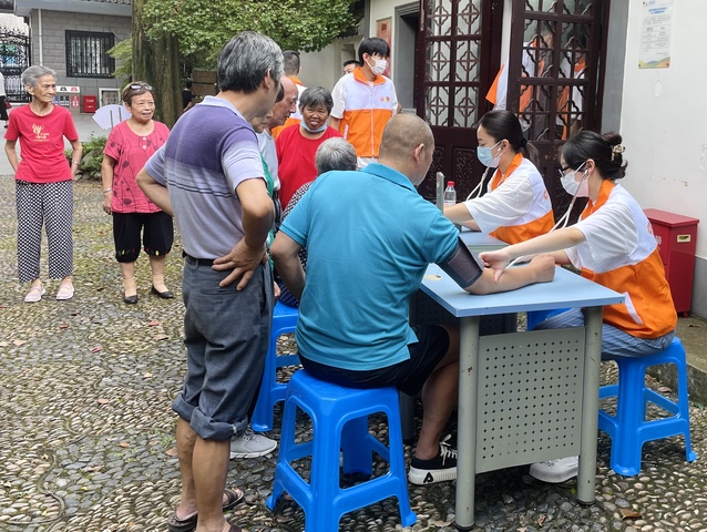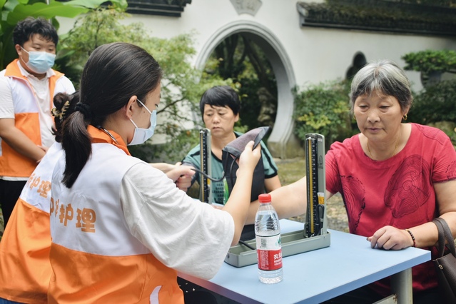 爱心义诊 守护健康|为老服务队的志愿者发挥护理专业的技能优势,通过使用更受老人们信赖的水银血压计进行血压测量,及时发现健康隐患,呵护老人健康,并积极引导血压较高的老年人继续参与高血压健康科普,了解在日常生活中应该注意的事项,促使老人养成健康的生活方式和习惯。