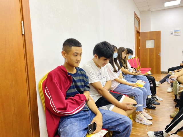 同学们在护理学院辅导员老师及志愿者的陪伴和协助下,认真填写登记表,排队测量血压、抽血化验,耐心等待血液检测结果,期待检验合格后能够献血成功。献血队伍中,既有之前参与过的大二学生,也有刚入学的大一新生,还有克服扎针抽血“恐惧”的男孩子。大家克服紧张忐忑的情绪,撸起袖子,为生命“加油”,传递爱的力量。