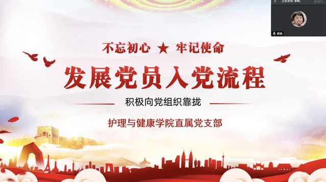 为进一步提升广大同学的基本政治理论素养,提高学生理论知识水平,培养坚实可靠的党员后备力量。2022年5月16日18:00,护理与健康学院在腾讯会议上举行2021-2022学年第二学期初党班开班仪式暨党员第一课学习 ,48名初党学员参加此次初党课。本次初党开班由护理与健康学院直属党支部副书记郭帆主讲,护理与健康学院直属党支部组织委员胡玥主持开班仪式。