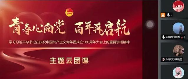 庆祝建团百年,讴歌青春岁月,坚定理想信念,弘扬奋斗精神。为深入学习贯彻习近平总书记在庆祝中国共产主义青年团成立100周年大会上的重要讲话精神,引导广大青年团员更好地学习百年来党领导下的青年运动的宏伟历程,充分激发团员自身的创新精神、奋斗精神和团结精神,使广大青年团员始终牢记习近平总书记的嘱托,坚定前进信心,在实现中华民族伟大复兴的时代洪流中踔厉奋发、勇毅前进,2022年5月30日,护理与健康学院组织全体青年观看“青春心向党,百年再启航”主题云团课。