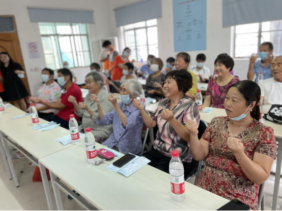 2019年的时候,护理与健康学院院长张捷带学院专业老师赴日本访问学习,了解到了当地的一套预防认知症的手指操,回国后联系了一名资深养老护理员取经,结合日本的手指操自创了一套“智认中国特色头脑养护操”。在每次开展“认知症健康知识普及”公益讲座时,会进行认知症知识普及及入户宣传,大学生与老年人们一起练习原创的“智认中国特色头脑养护操”。该公益活动已开展三年,遍布金山区桑园村等12个村居,6个养老院,在过往的基础上今年升级到了2.0版本。