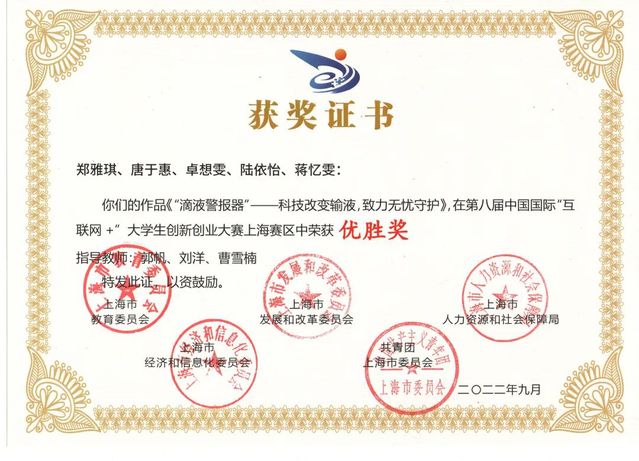 上海赛区优胜奖:《“滴液警报器”——科技改变输液,致力无忧守护》