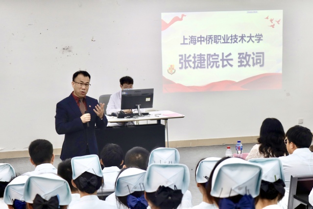 首届高本贯通班共计招生39人。上海中侨职业技术大学护理与健康学院院长张捷代表学院全体教师向39名新同学表示热烈祝贺。向思博学院给予的大力支持表示衷心感谢。他表示,高本贯通学生在高职阶段只有顺利通过转段考试,才能进入本科阶段学习,因此,在平时的学习中不能放松要求,要对自已树立目标、刻苦学习,他希望同学们要树立远大理想,志存高远,为今后的本科学习打好基础,在专业人文素养和专业技能上取得更大的进步,也希望高本贯通能够成为新时期人才培养的重要阵地。