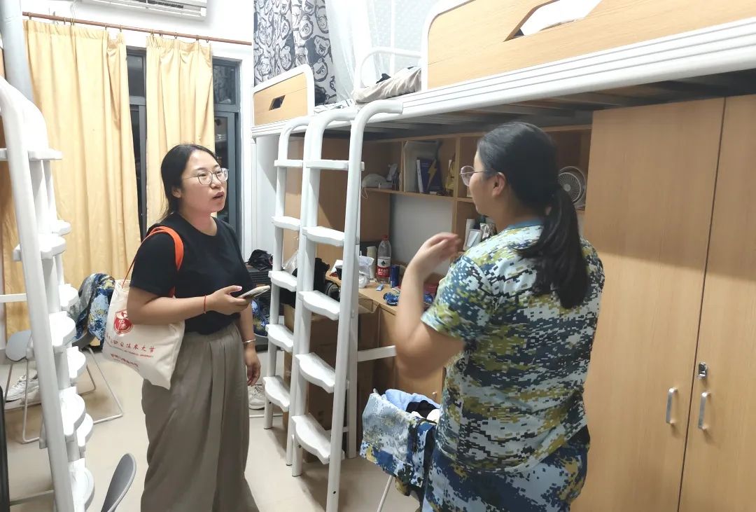 在走访各个寝室的过程中,辅导员们仔细查看每个新生寝室,对宿舍用电、内务状态提出建议,并与学生们亲切交流,杜绝使用违规电器,谨防电器火灾,并要求大家保持寝室卫生干净整洁,物件摆放齐整,营造良好的寝室生活氛围。