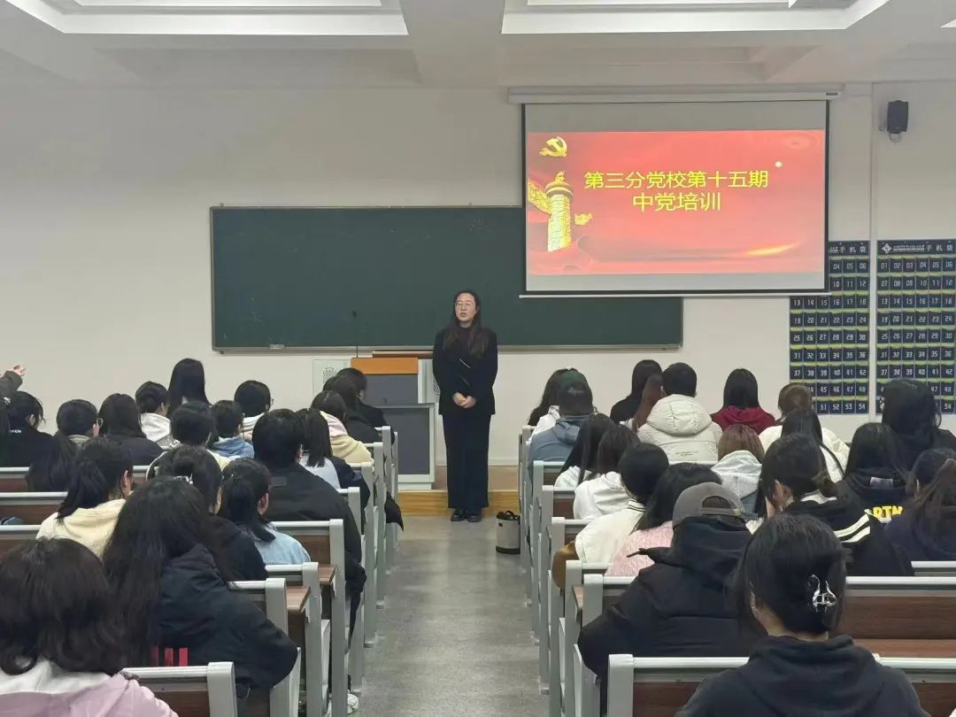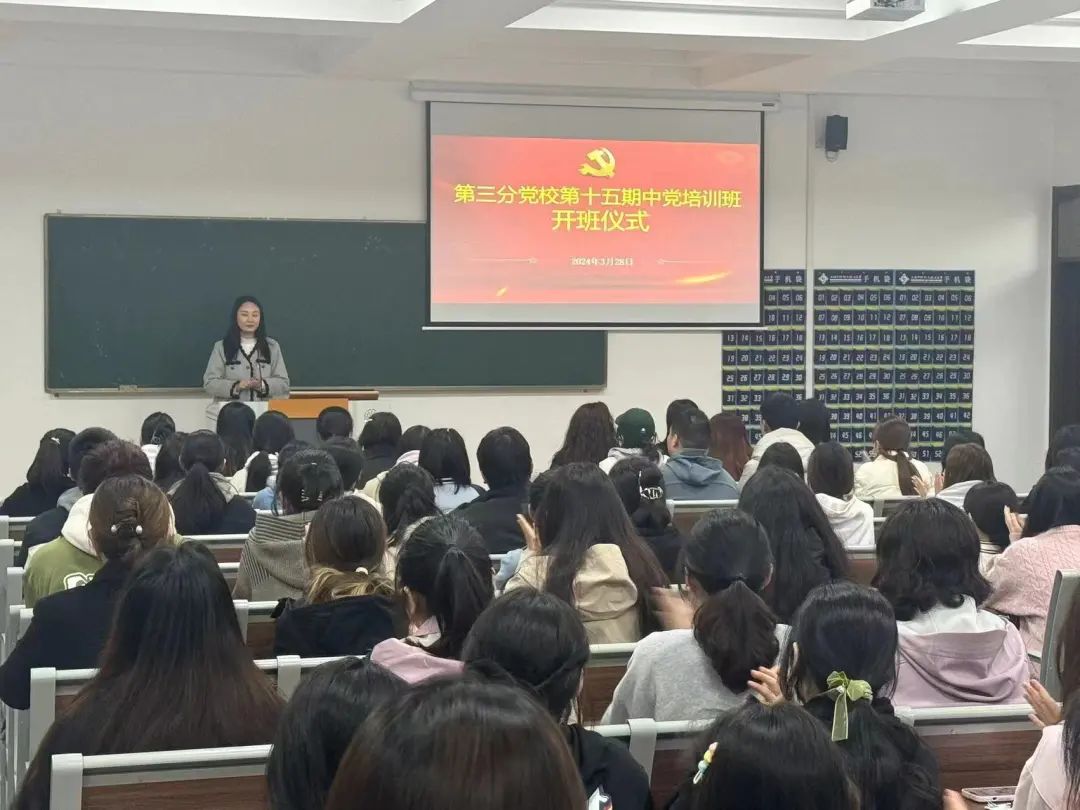 为加强入党积极分子的思想理论水平和政治素养,进一步端正其入党动机,2024年3月28日18:30护理与健康学院、食品药品学院、外国语学院在42号楼116共同开展了第十五期入党积极分子培训班开班仪式暨中党第一讲。护理与健康学院直属党支部副书记郭帆,外国语学院直属党支部副书记盛雨濛,外国语学院直属党支部组织委员郭惠慧,食品药品学院直属党支部组织委员赵燕芹出席开班仪式。本次开班仪式由护理与健康学院直属党支部组织委员陶丽主持。