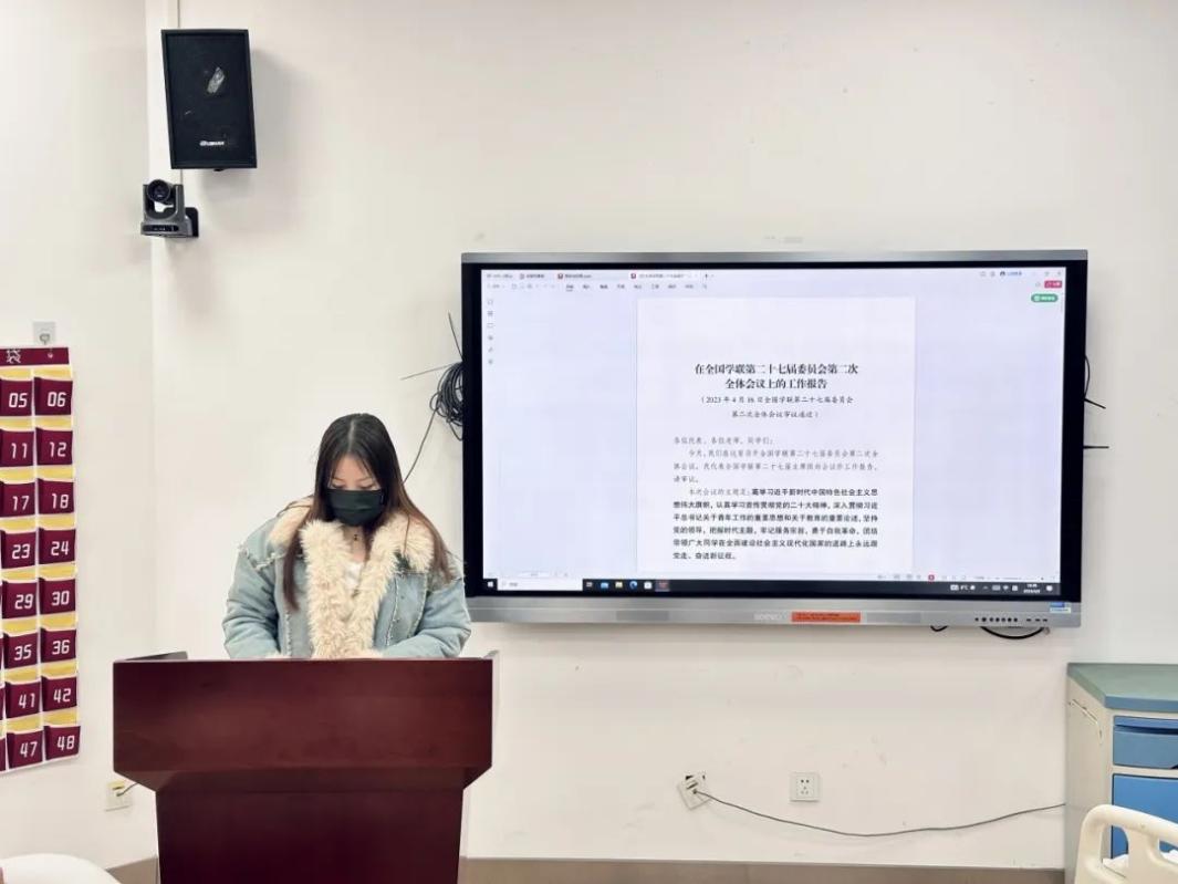 会议伊始,学生会执行主席涂媛对近期的部门工作情况作出评价,并带领大家学习《关于推动高校学生会(研究生会)深化改革的若干意见》、《在全国学联第二十七届委员会第二次全体会议上的工作报告》等相关文件。她强调,学生干部与干事要以党的二十大精神为引领,培养思想政治觉悟,增强责任感和使命感,也要始终牢记“全心全意为同学服务”的宗旨,充分吸收广大同学诉求,将服务工作落在实处,发挥好模范带头作用。