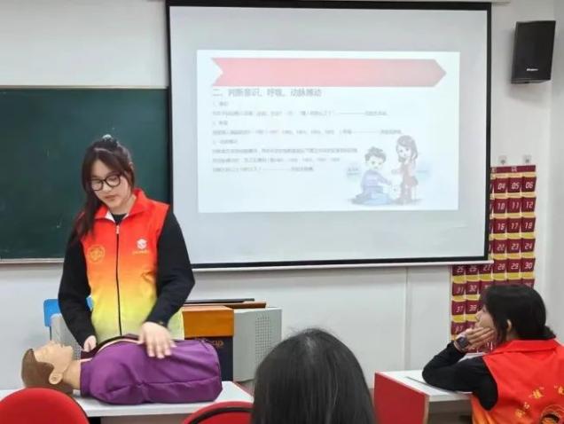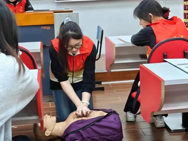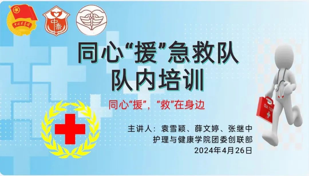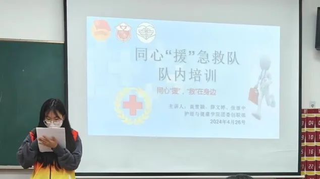 为学习贯彻习近平新时代中国特色社会主义思想主题教育,进一步巩固、提升队员们的急救能力。护理与健康学院于4月26日在7号楼208室开展本学期同心“援”急救队第一次队内培训。本次培训由我院团委创联部部长袁雪颖和同心“援”急救队队员薛文婷、张继中共同主持。