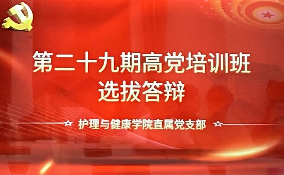 为严格把控党员发展关,保证党员发展质量,端正学员入党动机,护理与健康学院直属党支部于2024年4月29日18:30在7号楼202召开高党学员选拔会,15位中党学员参与了此次答辩。护理与健康学院直属党支部副书记郭帆、组织委员陶丽、宣传委员张玲、纪检委员汤雅琪出席此次会议。本次会议由陶丽老师主持。