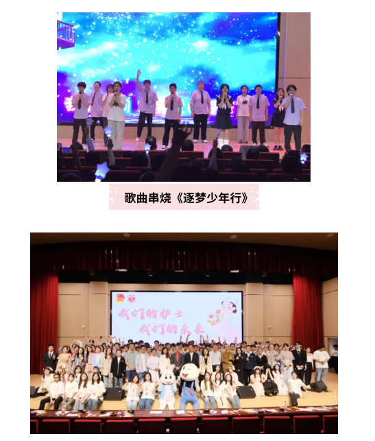 本次“5·12”国际护士节晚会精心设计了包括合唱、舞蹈、小品、朗诵、舞龙舞狮等13个形式多样的节目、1轮颁奖环节及5轮抽奖互动,晚会围绕着 “我们的护士,我们的未来”主题,为大家展现出一幕幕丰富多彩、内容别致的节目,展示了护理学子的朝气蓬勃、昂扬向上的精神风貌与青年学子作为新一代护理人的身份认同感和职业自豪感。