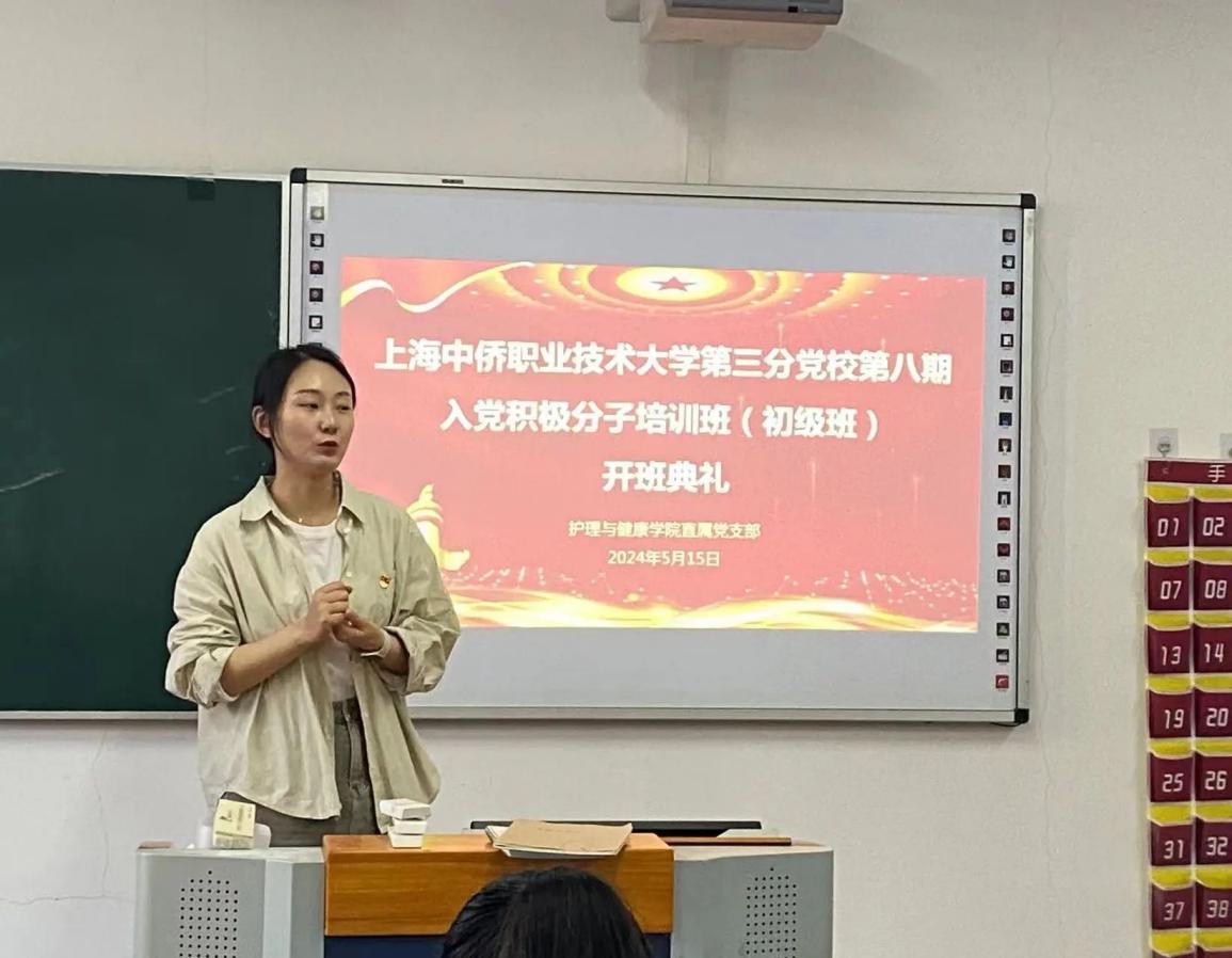 为培养坚实可靠的党员后备力量,端正学员们的入党动机。护理与健康学院于2024年5月15日18:30在7号楼501室举行了第三分党校第八期入党积极分子培训班(初级班)第一讲,全体初党学员参加此次初党开班。本次开班仪式由护理与健康学院直属党支部组织委员陶丽主持。