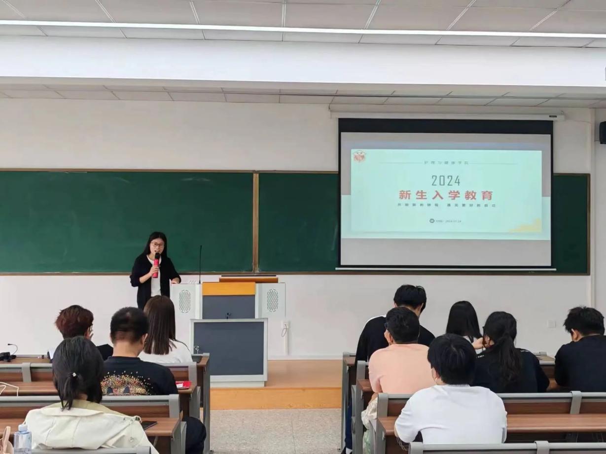 会议开始,郭帆老师热烈欢迎24级新生加入护理与健康学院大家庭。她表示,大学生活是人生中最美好的时光。希望通过此次入学教育,同学们能对未来做好规划,用全新的面貌迎接即将到来的大学生活。