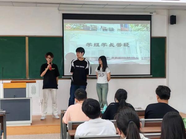 最后,进入新生问题答疑环节。老师和学长学姐们针对新生在现场提出的各类问题进行解答,并提出建议。