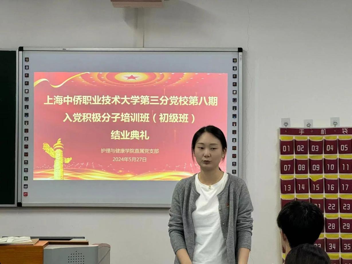 为全面考察初党学员的政治素质和党性修养。护理与健康学院于5月27日18:30在7号楼501教室开展初党培训结业仪式,全体初党学员参与本次结业仪式。出席本次结业仪式的老师有护理与健康学院直属党支部副书记郭帆、护理与健康学院直属党支部宣传委员张玲、护理与健康学院直属党支部纪检委员汤雅琪、护理与健康学院直属党支部组织委员陶丽。本次结业仪式由护理与健康学院直属党支部组织委员陶丽老师主持。