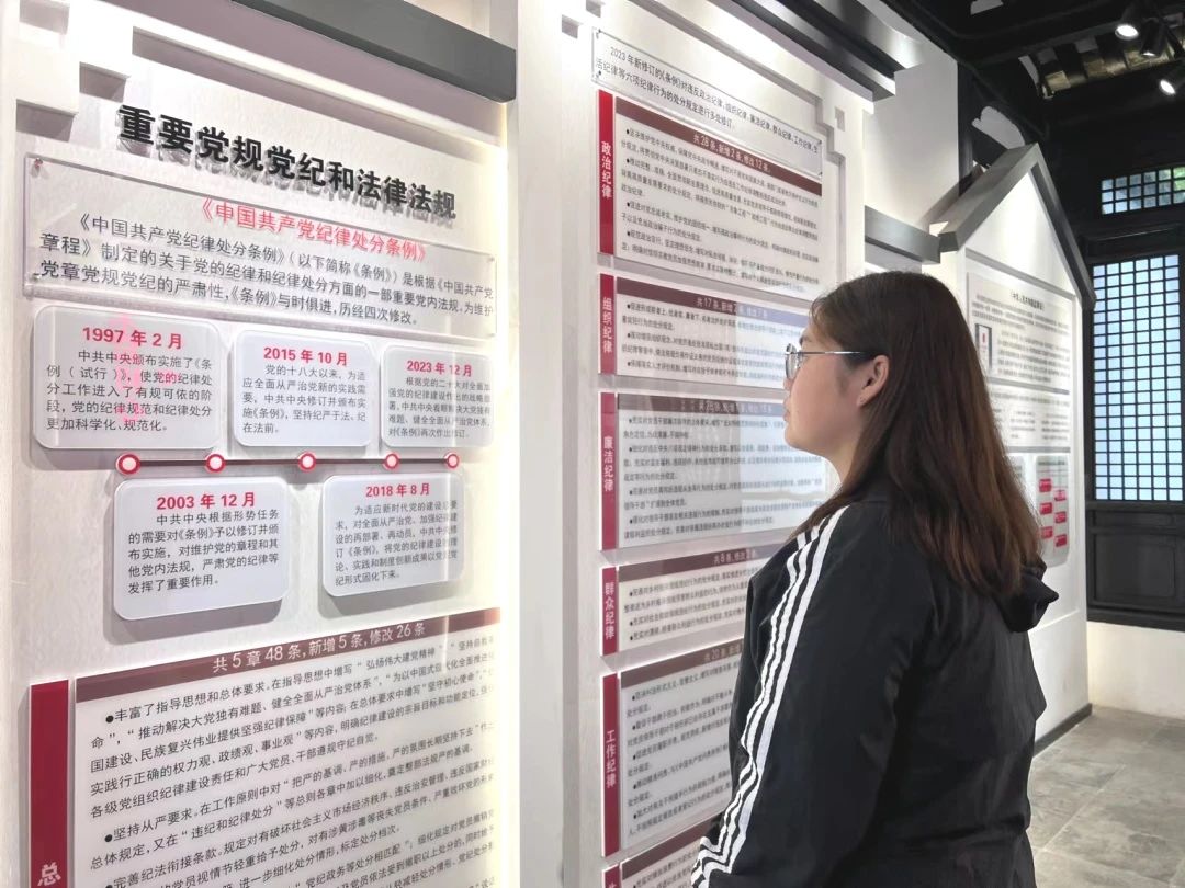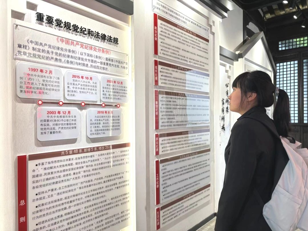 最后,党员们参观了《中国共产党纪律处分条例》这一重要的党规党纪,党员们边阅读、边思考、边体悟,从丰富的图文资料中深刻体会廉政文化,从一例例生动案例中总结教训,引以为戒,进一步筑牢拒腐防变的思想防线。