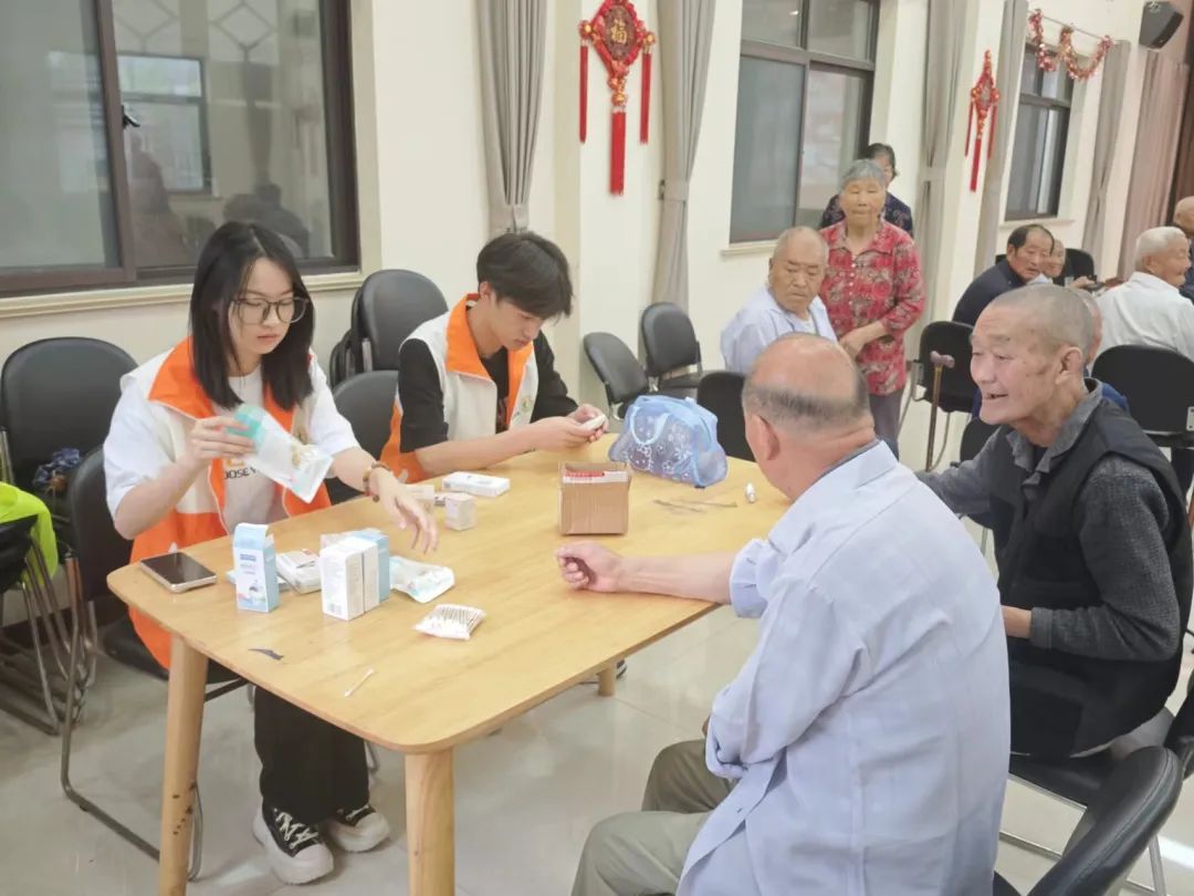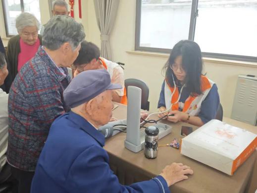 随后,志愿者们分批为老人们测量了血糖血压。志愿者们专心测量的同时,也耐心地解答老人们的问题,并嘱咐老人们要多多关注自身身体状况。