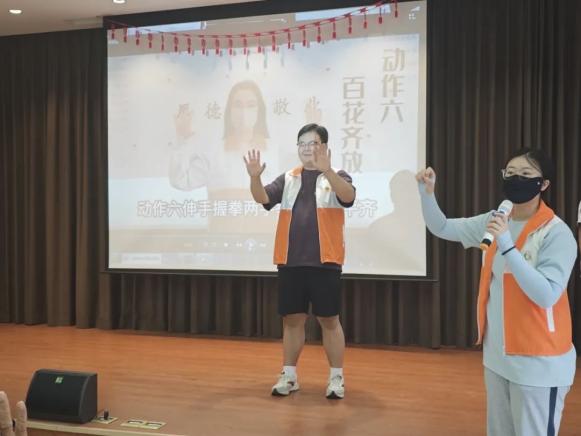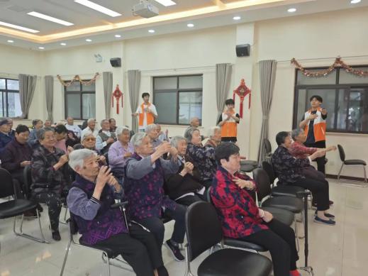 多才多艺的志愿者们为老人们带来了文艺表演活动。志愿者们首先为老人们献上了洗手操表演,不仅活跃了气氛,并以节目的形式教会老人如何正确洗手。为鼓励老人们跟随志愿者一起活动双手,志愿者们表演了手指操,降低老人们认知症的风险。
