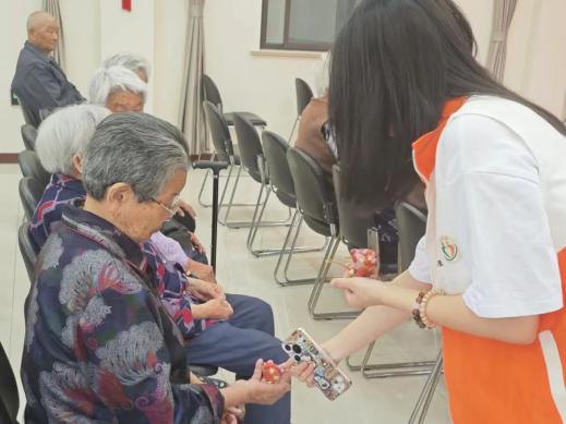 活动的最后,志愿者们为老人们送上真挚的端午祝福,给老人们分发了端午礼品——亲手制作的五彩绳和艾草香包,活动在欢声笑语中落下帷幕。