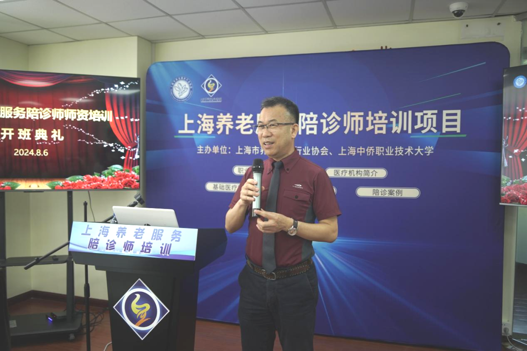 2024年8月6日,上海中侨职业技术大学和上海市养老服务行业协会联合主办的上海养老服务陪诊师师资培训正式启动。开班仪式在上海市浦东新区张江科学城举行。上海市养老服务行业协会会长徐启华出席活动并讲话。本次培训班共有50位学员参加。开班仪式由上海中侨职业技术大学护理与健康学院创始院长张捷主持。