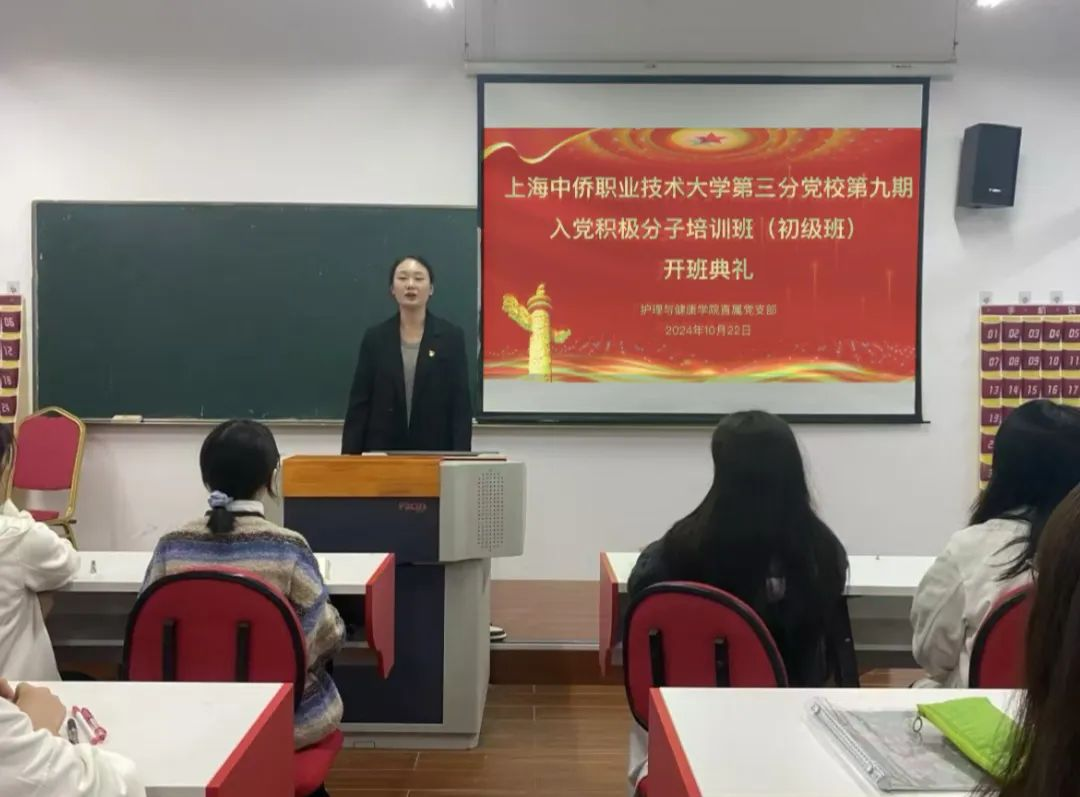 为加强党员队伍建设,推进党员后备力量培育工作,护理与健康学院于10月22日18:30在7号楼504开展了第九期入党积极分子培训班(初级班)开班典礼暨党课第一讲。护理与健康学院直属党支部组织委员陶丽、宣传委员张玲、纪检委员汤雅琪出席此次开班仪式。本次仪式由我院陶丽老师主持。