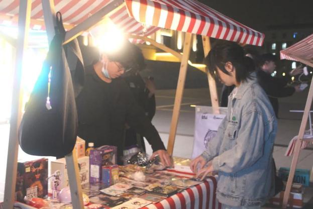 充满青春活力的“校园夜市”吸引了无数师生驻足观看,有的摊位热情吆喝,有的摊位现场制作。各色商品琳琅满目,包括校园文创好物、手工艺品、摄影书法作品、塔罗占卜等,“校园夜市”在传统售卖的基础上,融入了国风、文化、创意和开放性元素,不仅展现出同学们的创新创业精神,更为校园增添了一抹靓丽的风景线。