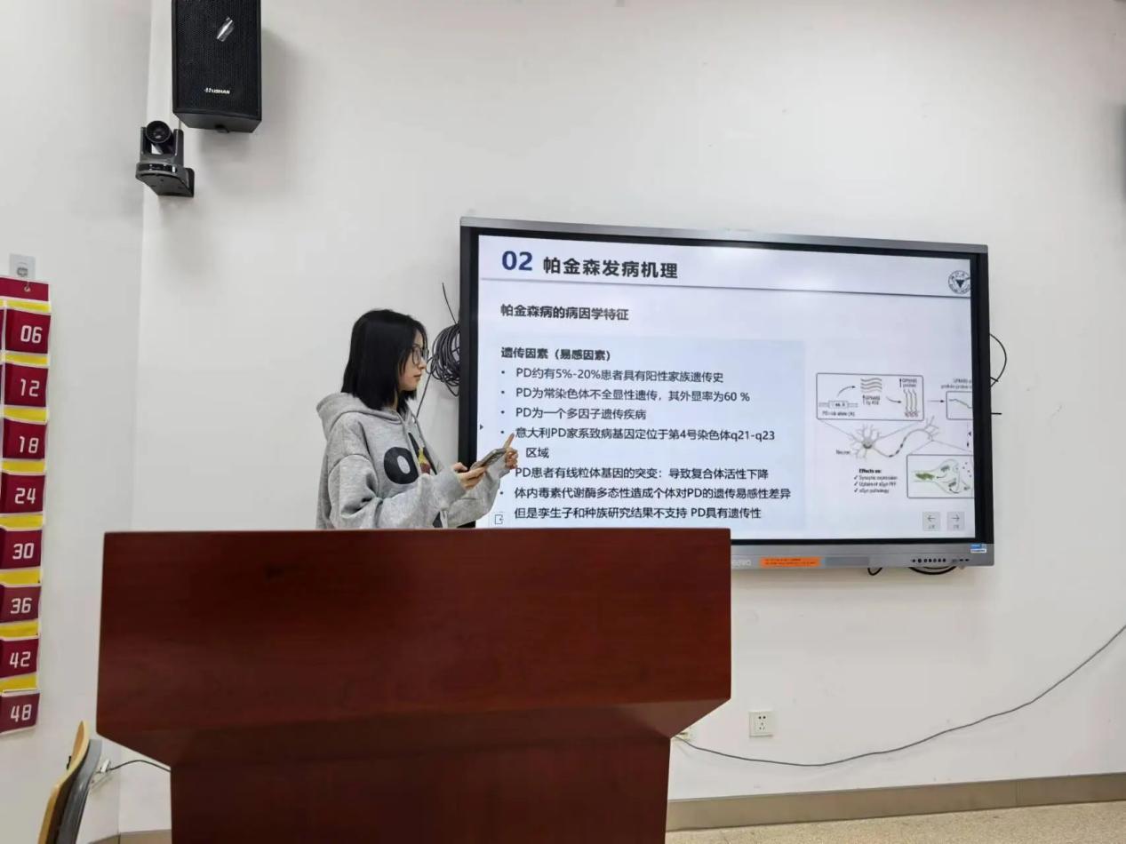 社长陈翊为同学们普及了帕金森及相关运动障碍疾病的知识,让同学们对这一常见的神经系统疾病有了系统的了解,并分享了当前帕金森疾病的主要治疗方法,尤其强调了个性化治疗方案的重要性,进一步加深了同学们对此类疾病的认识。