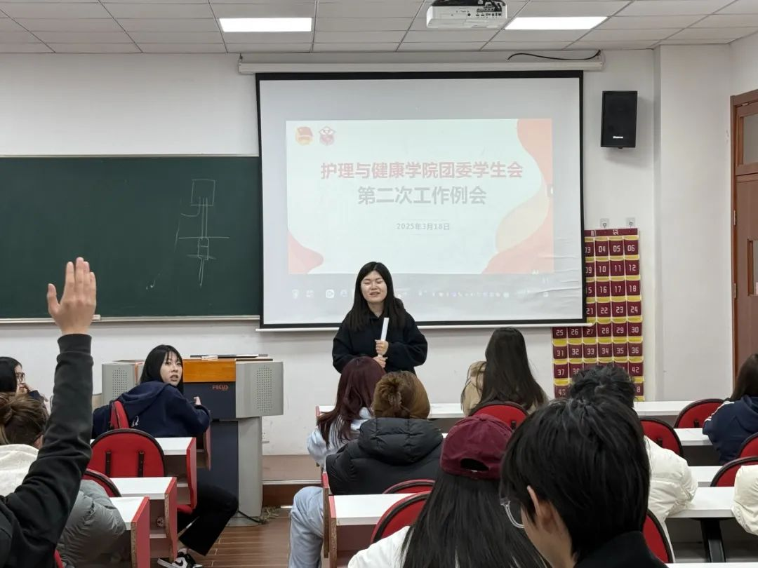 为加强团委、学生会各部门间的交流与合作,明确后续的工作方向,护理与健康学院团委、学生会于2025年3月18日18:30在7-208教室召开第二次工作例会。本次会议由我院主席团成员刘其主持,团委书记张玲老师、主席团成员及各部门干部参与。