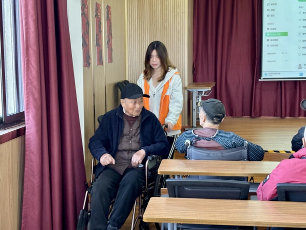 在活动开始前,考虑到部分老人可能存在行动不便的问题,志愿者们耐心搀扶、逐一引导,小心翼翼地协助老人们入场。