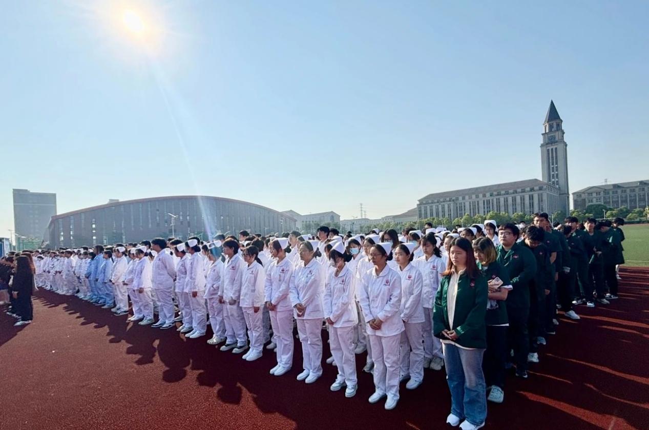 为庆祝第114个国际护士节,弘扬南丁格尔勇敢无畏、甘于奉献的精神,同时强化同学们安全责任意识,2025年5月12日7时30分,护理与健康学院在操场举行主题为“我们的护士,我们的未来”升旗仪式。参加本次升旗仪式的有护理与健康学院创始人兼院长张捷、教学副院长曹雪楠、直属党支部副书记郭帆、教学督导陈伟光、全体辅导员及护理与健康学院全体学生,本次升旗仪式由23护理本科1的王祎婷同学主持。