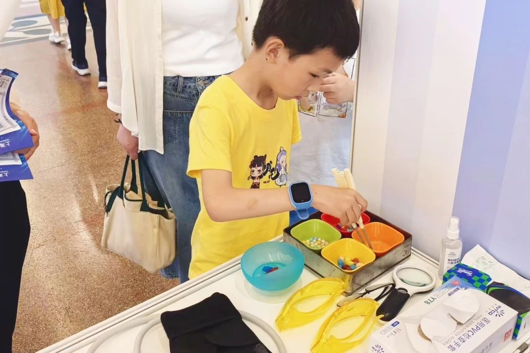 本次我院所打造的“体验+服务”一体化为老服务创新实验室一经亮相便吸引了许多观展者。在志愿者协助下,体验者穿上高龄模拟装备,体验老年人吃饭和视力下降的不便。戴着手部拘挛模拟手套,使用餐具变得困难;戴上模拟老花镜后,视野模糊扭曲。这些体验让体验者切身感受老年人身体机能衰退的影响。体验结束后,许多体验者纷纷感叹老年生活的不易,深刻理解了老人生活中的不便之处,他们表示今后要多多关照和爱护身边的老人,让老有所依照进现实。