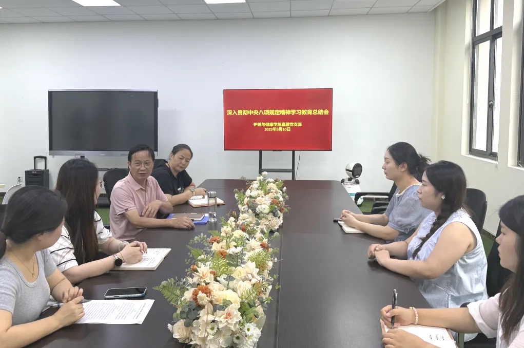 为传达学习习近平总书记关于深入贯彻中央八项规定精神学习教育的重要指示精神,巩固学习教育成果,推进作风建设常态化、长效化。2025年9月10日,护理与健康学院直属党支部在7号楼209会议室召开深入贯彻中央八项规定精神学习教育总结会。本次会议由护理与健康学院直属党支部副书记郭帆主持,学院党政领导班子及支部委员参会。