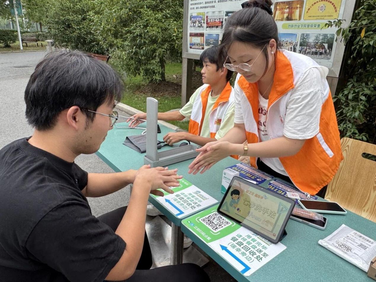 护理与健康学院团委社会实践部于10月7日14:00在食堂东门开展了一系列健康体验活动。