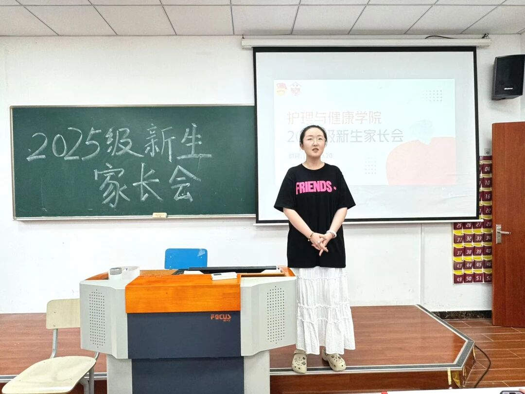 2025年9月20日16:00,护理与健康学院于7号楼208教室召开25级新生家长会。家长会上,曹雪楠老师和郭帆老师分别围绕护理专业特色与人才培养体系展开讲解,帮助家长清晰把握专业学习节奏,并提供了科学的学习规划与建议。同时,她们针对同学们在校日常适应问题进行细致答疑,为构建家校协同育人打下坚实基础。除此之外,学院还开展了学长学姐答疑会,为同学们搭建起一座答疑解惑的桥梁。