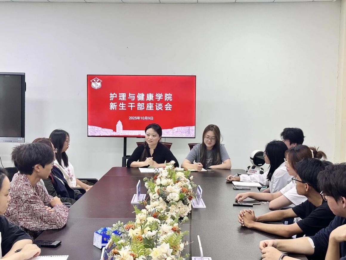 2025年10月9日19:40,护理与健康学院于7号楼209教室召开2025级新生班干部会议。会议伊始,郭帆老师热烈欢迎25级新生班干的加入,并让他们进行了初步的自我介绍。随后,郭帆老师就班级工作与学生需求等方面进行深入探讨部署,要求班干部发挥带头作用,通过定期组织主题班会、开展学习互助活动等方式,持续强化班级学风建设,切实保障班级管理有序推进、学生成长需求有效落实 。最后,专职辅导员朱心怡分享班级管理经验,传授工作方法与沟通技巧,鼓励班干部创新班级活动形式,增强班级凝聚力。