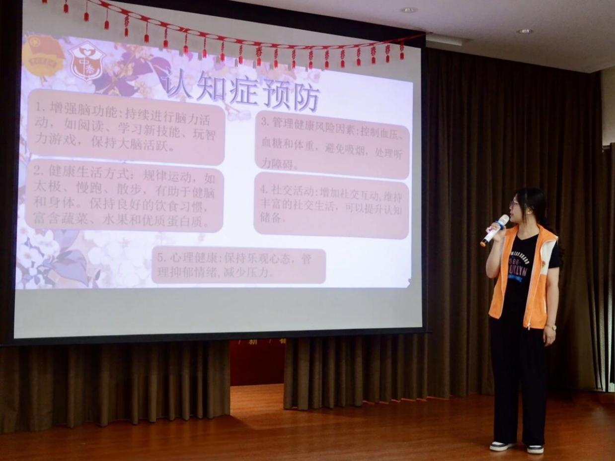 随后,志愿者们结合专业知识开展认知症宣讲活动,他们用通俗易懂的语言讲解认知症的预防要点,帮助老人们树立科学防老意识。同时,在温馨的氛围中,志愿者们还耐心地为老人们进行了舒缓的肩颈与手臂按摩,力道轻柔且精准。