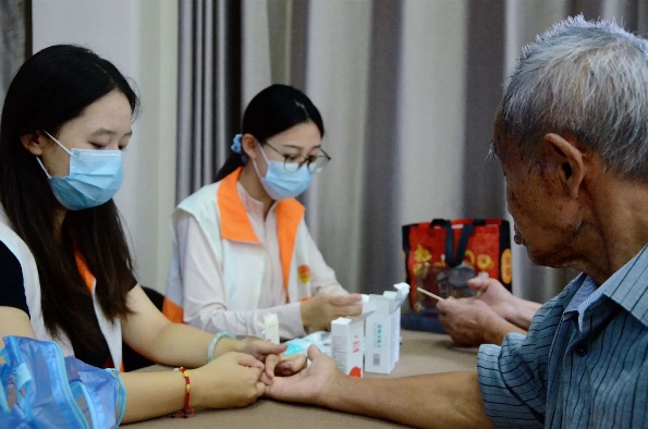 活动伊始,志愿者们细致地为老人们测量了血压与血糖,并结合检测结果给予针对性的健康提醒,叮嘱他们合理饮食、规律作息。