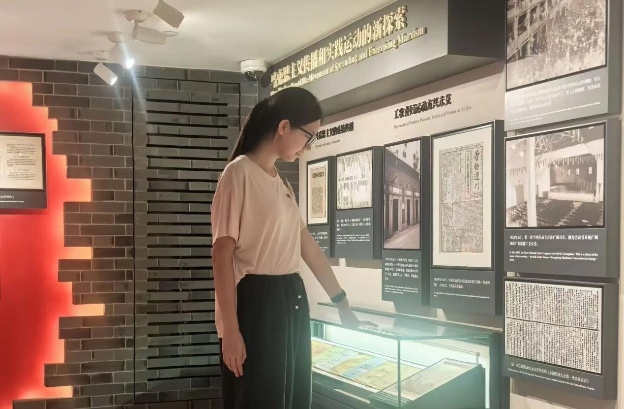 移步中共二大会址,复原的历史场景瞬间拉近距离。同学们驻足在展柜前,凝视着首次提出反帝反封建纲领的文献手稿、第一部《中国共产党章程》的复刻本,还不时用手机记录下珍贵史料,在“从稚嫩走向初步成熟”的历史细节里产生共鸣。