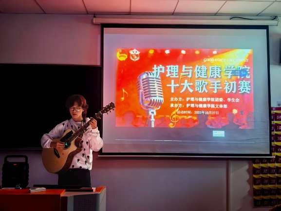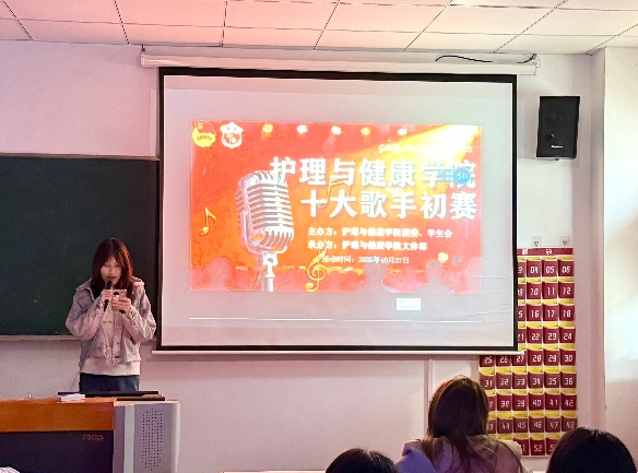 为进一步丰富校园文化生活,营造和谐向上的校园环境,护理与健康学院于10月27日18:30在7号楼208教室举办第23届校园十大歌手大赛(初赛)。