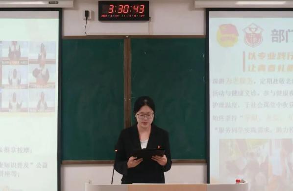 大会第一项议程,由团委、学生会主席团成员王嘉悦围绕第六届团委、学生会的规模、部门职能、规章制度等方面进行详细汇报,系统地总结了近期工作开展情况,展现了各部门团结高效的工作风貌。她希望全体成员以高度的纪律性与集体荣誉感,凝心聚力,砥砺奋进,共同谱写护理与健康学院团学工作的崭新篇章。