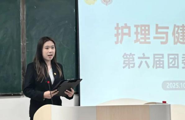 大会第五项议程中,学院直属党支部副书记郭帆首先向新加入团委、学生会的“新鲜血液”致以热烈欢迎。她特别援引歌手周深《有我》中的歌词,将“前往皓月星辰,初心不忘”这句充满力量的旋律,化作送给全体新成员的成长箴言。她谈到这“皓月星辰”是更广阔的成长平台、更卓越的自我期许与更光明的人生前景,这份“初心”正是立足岗位的担当、服务同学的热忱。最后,她希望全体成员以“积极奉献自我、持续提升能力”为使命,在实践中锤炼本领、在奋斗中奔赴理想,始终坚守初心、逐光而行,为护理与健康学院的高质量发展添注青春动能。
