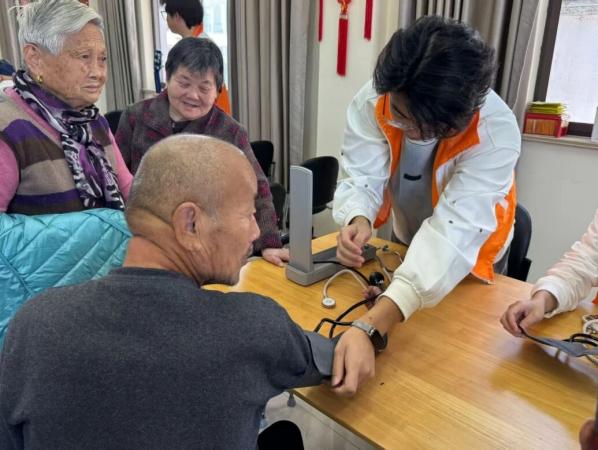 活动伊始,志愿者们迅速进入状态,有序为老人们测量血压、血糖,细致记录数据,并结合检测结果提供实用的健康建议,叮嘱老人们规律作息、均衡饮食,以科学生活方式筑牢健康防线。