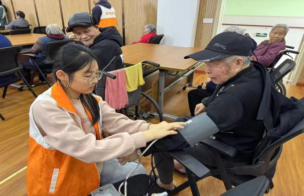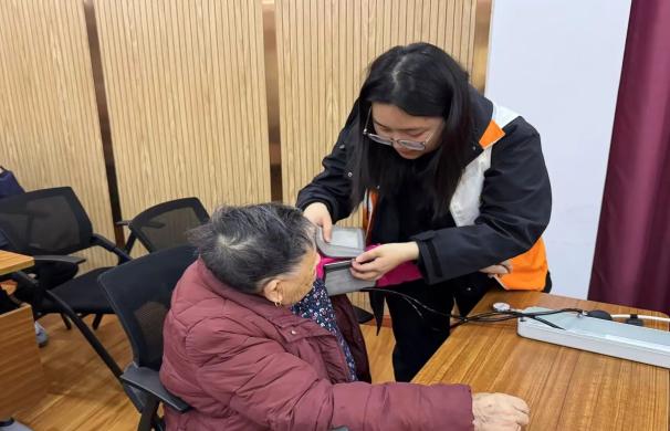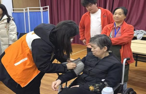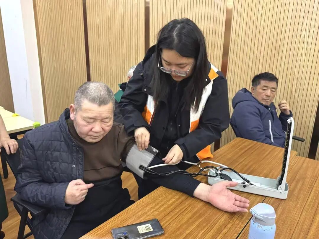 活动伊始,志愿者们面带微笑、轻声问候,与老人们亲切交谈,细心询问长辈们的身体状况与日常起居,为他们送上春日关怀。紧接着,大家有序为老人们测量血压,认真记录数据、耐心解答疑问,用专业护理守护老人健康。