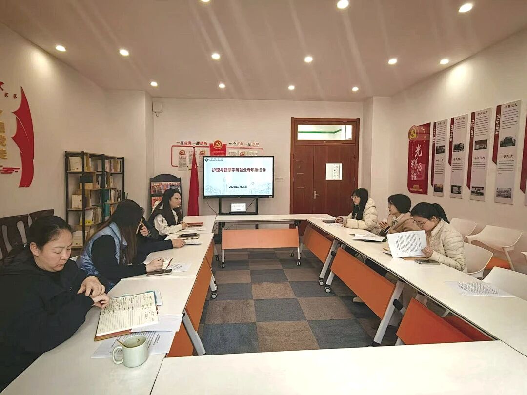 为进一步构建就业工作新格局,牢筑毕业生就业指导基础,护理与健康学院于2026年3月26日在7号楼202教室召开就业推进会。本次会议由护理与健康学院直属党支部副书记郭帆主讲,护理与健康学院直属党支部书记、院长于有江、副院长曹雪楠、顾丽华、专业主任以及毕业班辅导员共同参与。