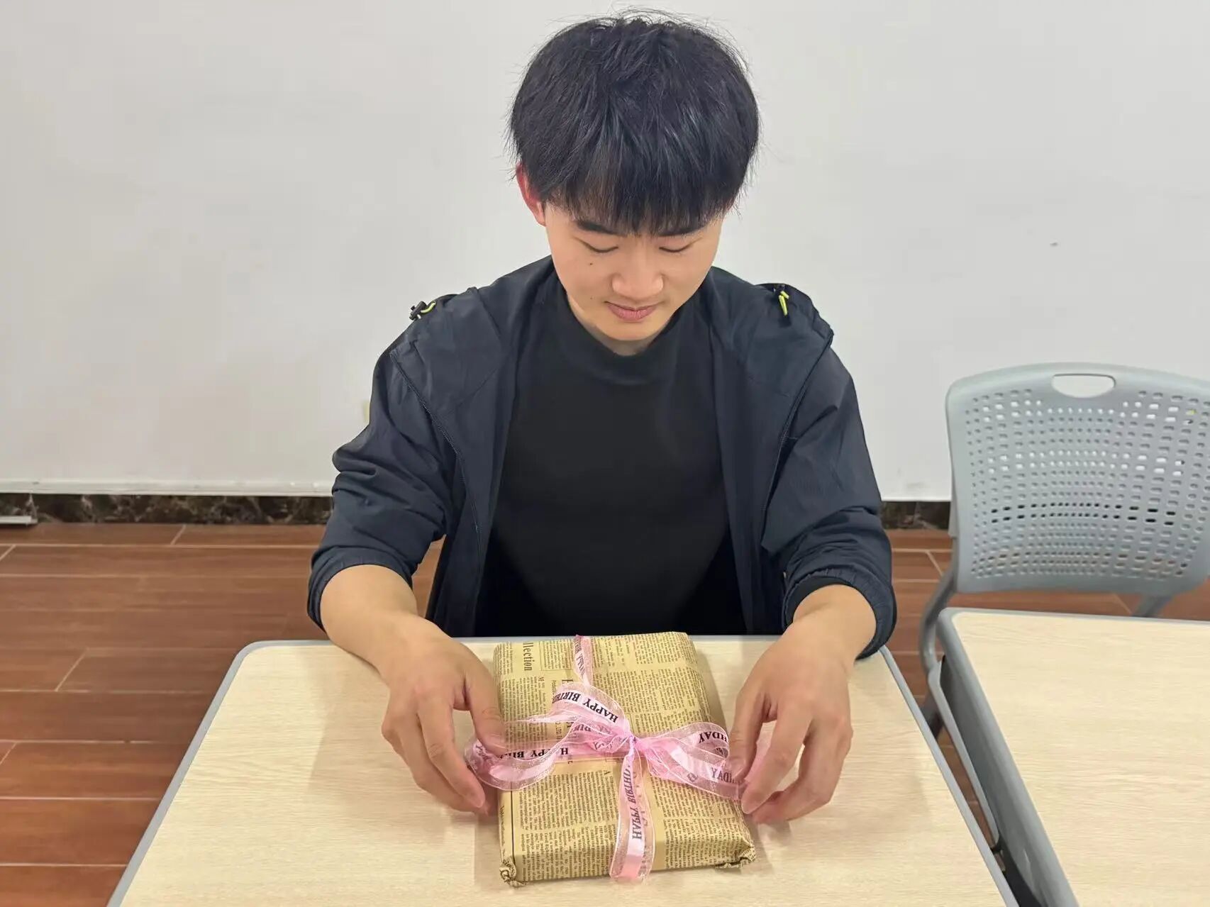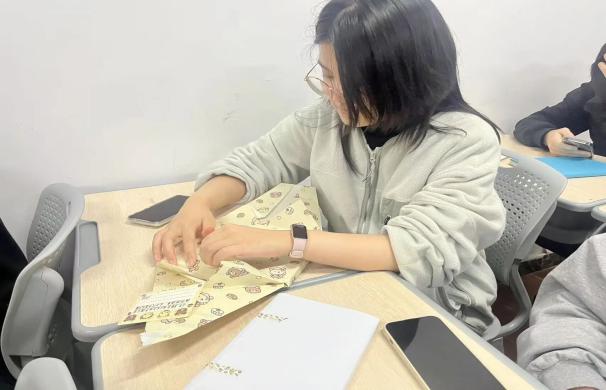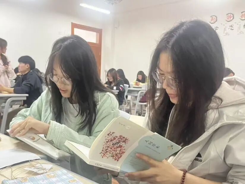 随后进入书籍盲盒交换环节,同学们拿出挑选好的闲置书籍,有的用牛皮纸包裹系上麻绳,有的贴上手绘标签与温馨祝福,每一份书籍盲盒都藏着独特心意。大家在现场自由翻阅、认真挑选、友好互换,现场氛围热烈,洋溢着书香与青春活力。